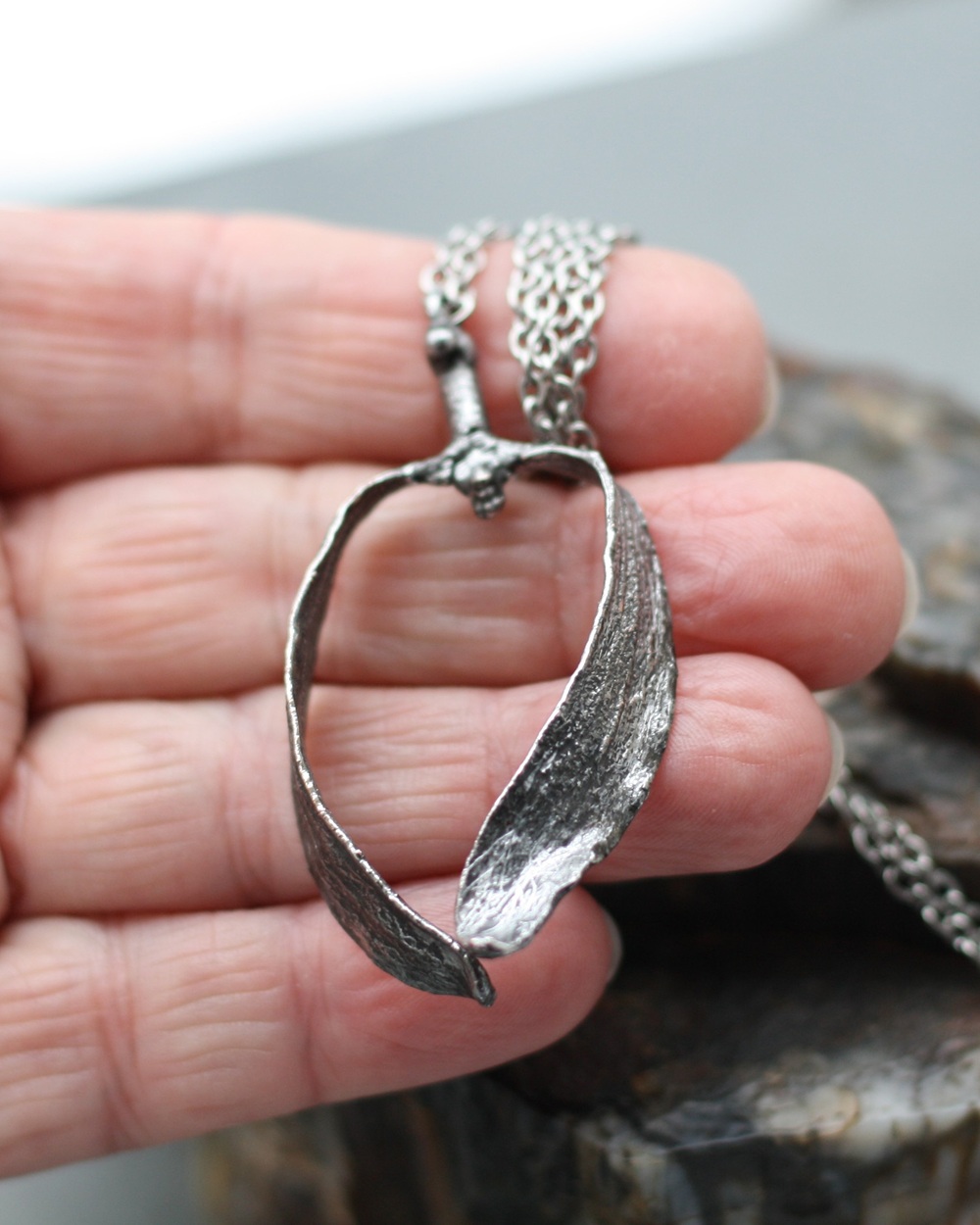 Katalogové číslo 15588844 Kategorie Cín, Cínované přírodniny, Cínované rostliny, Náhrdelníky Štítky cín, cínění, cínová svatba, cínované šperky, cínování, cínové šperky, jmelí, náhrdelník, novinka, pocínování, přírodniny, symbol, výročí svatby, ženskost Značka: LENKA BLAZA artTento šperk vznikl novou autorskou technikou cínování přírodnin, kterou jsem sama vyvinula a poprvé uvádím do své nabídky. Díky tomuto postupu nepůsobí šperk na první pohled jako cínový, vizuálně se blíží stříbru a má výrazný, čistý kovový lesk. Šperk je mnohem lehčí.