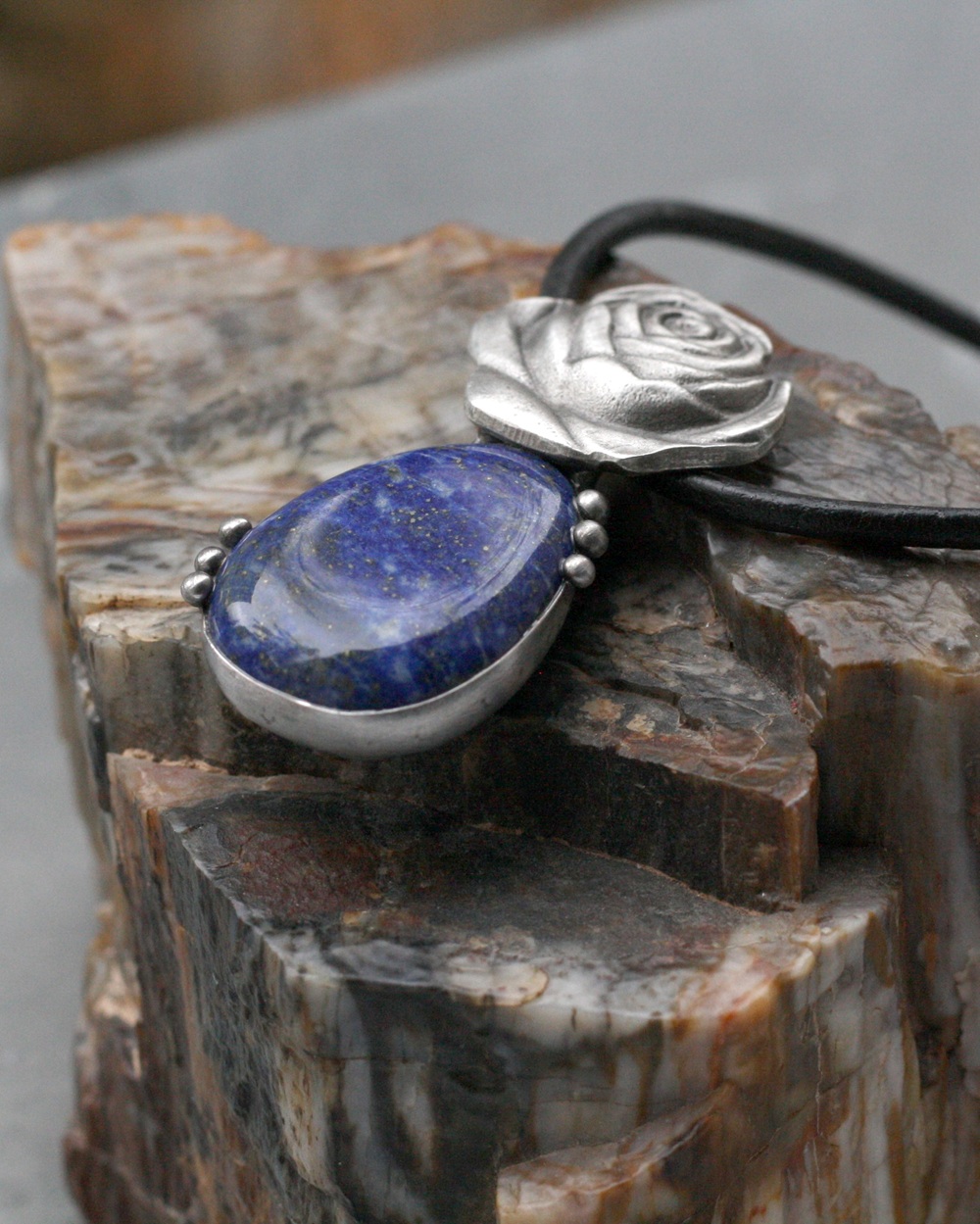 Cínovaný náhrdelník s lápisem lazuli Květina