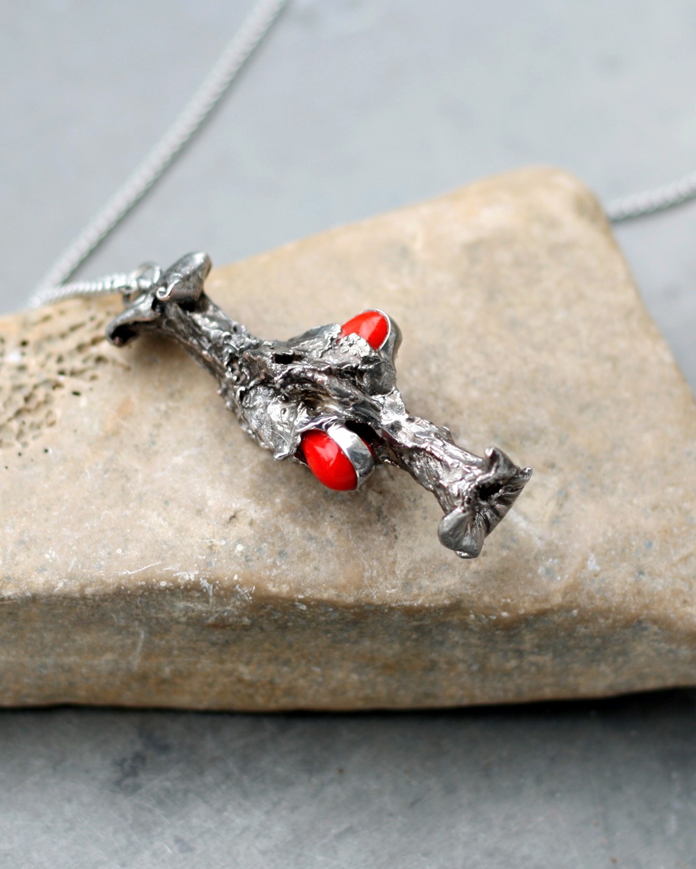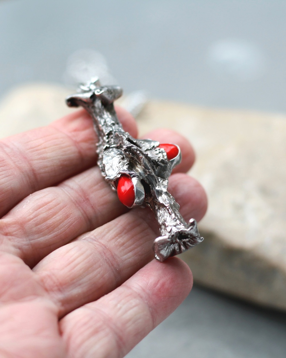 Místo semínek byly vloženy kapky červeného korálu.